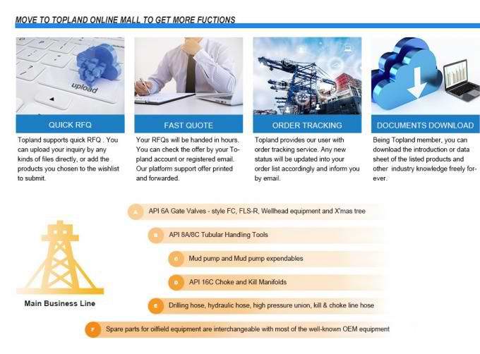 Topland — интегрированный поставщик, основанный в 2008 году. Мы являемся международной группой по поставкам нефтегазового оборудования с профессиональными командами в более чем 5 странах, включая ОАЭ, Кувейт, Иран и Саудовскую Аравию. Среди наших партнёров — такие компании, как ADES, ECDE, EDC, SOCAR-AQS, PDL, SAKSON, ONGC и другие.